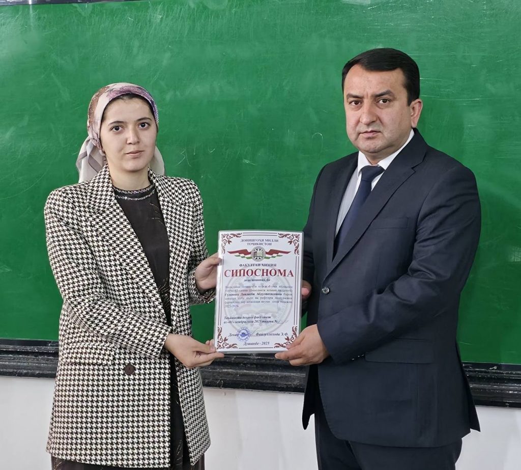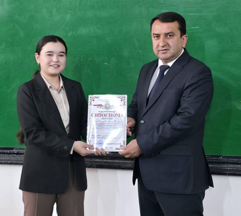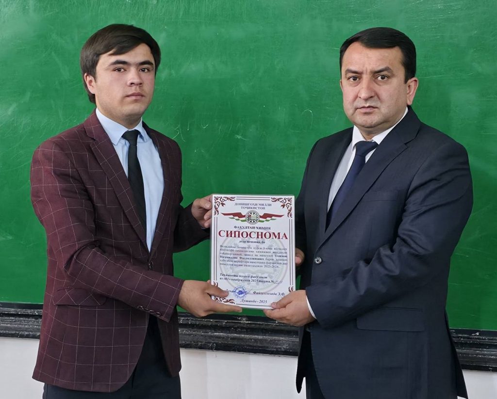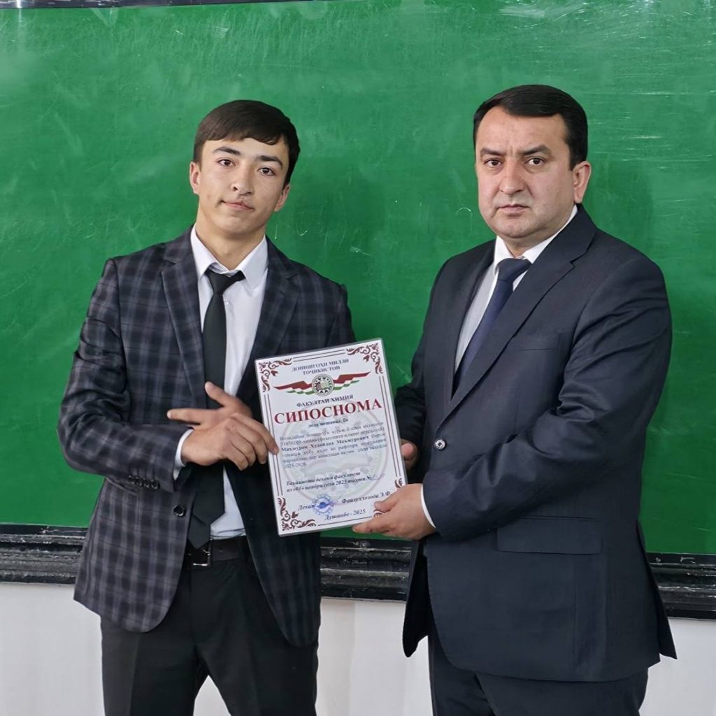 Имрӯз (01.11.2025) дар доираи ҷаласа бо волидайни донишҷӯёни курсҳои сеюм ва чоруми факултети химияи ДМТ ба як қатор волидайни донишҷӯён ва донишҷӯён барои дониши хубу аъло ва рафтори намунавӣ аз ҷониби Садорати факултети химия СИПОСНОМА дода шуд.