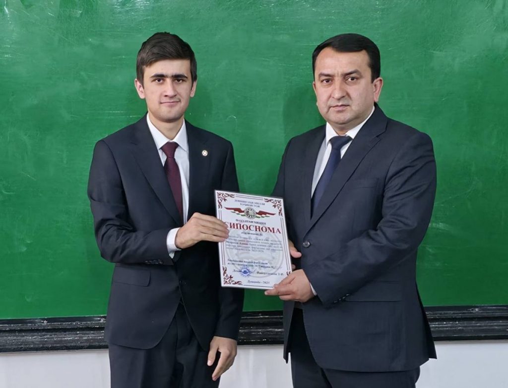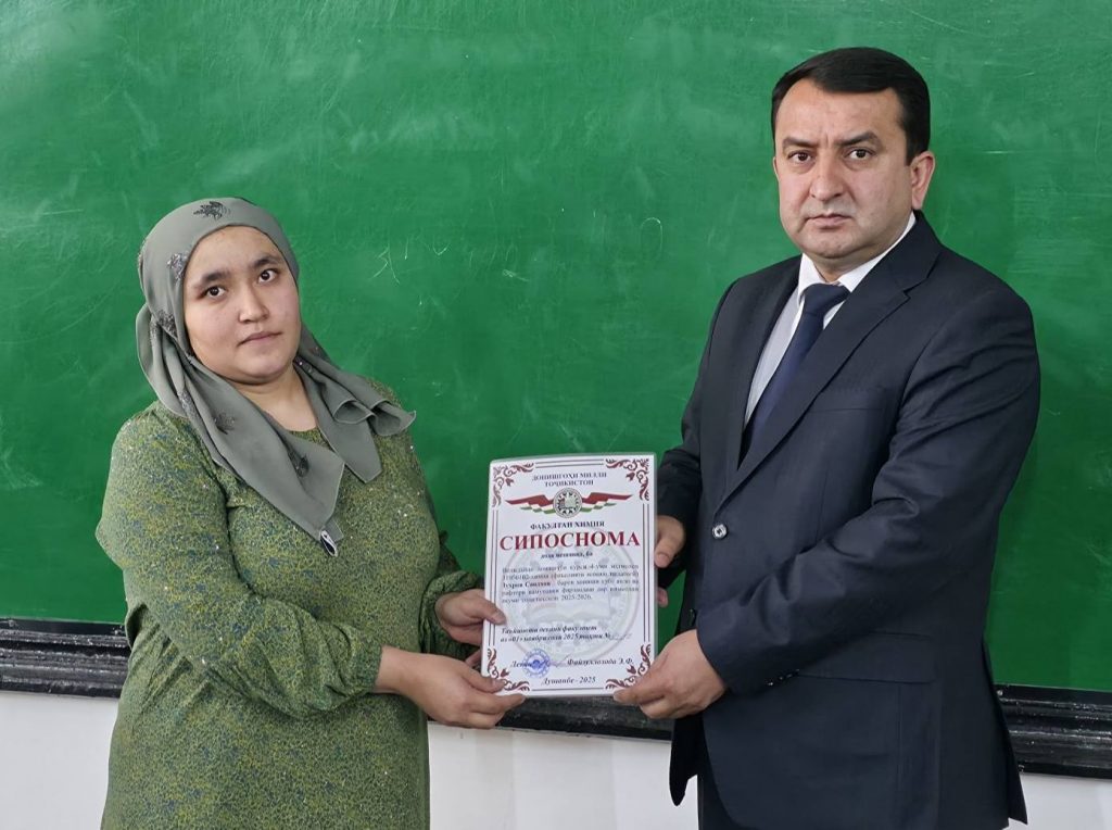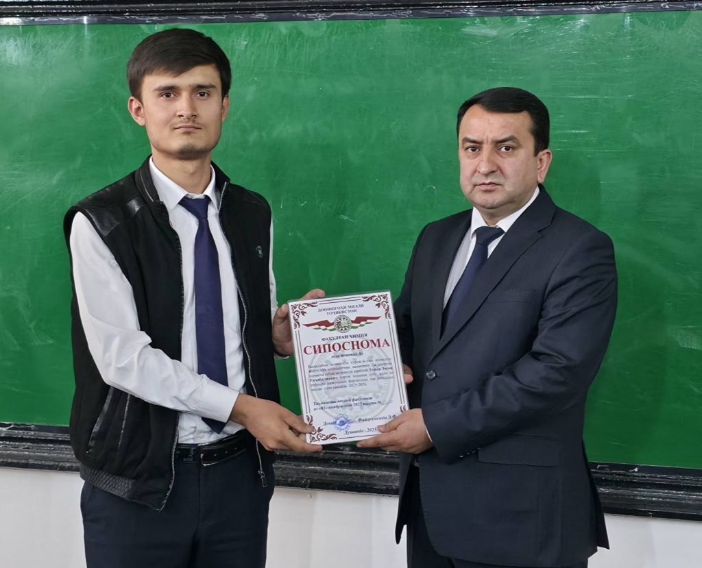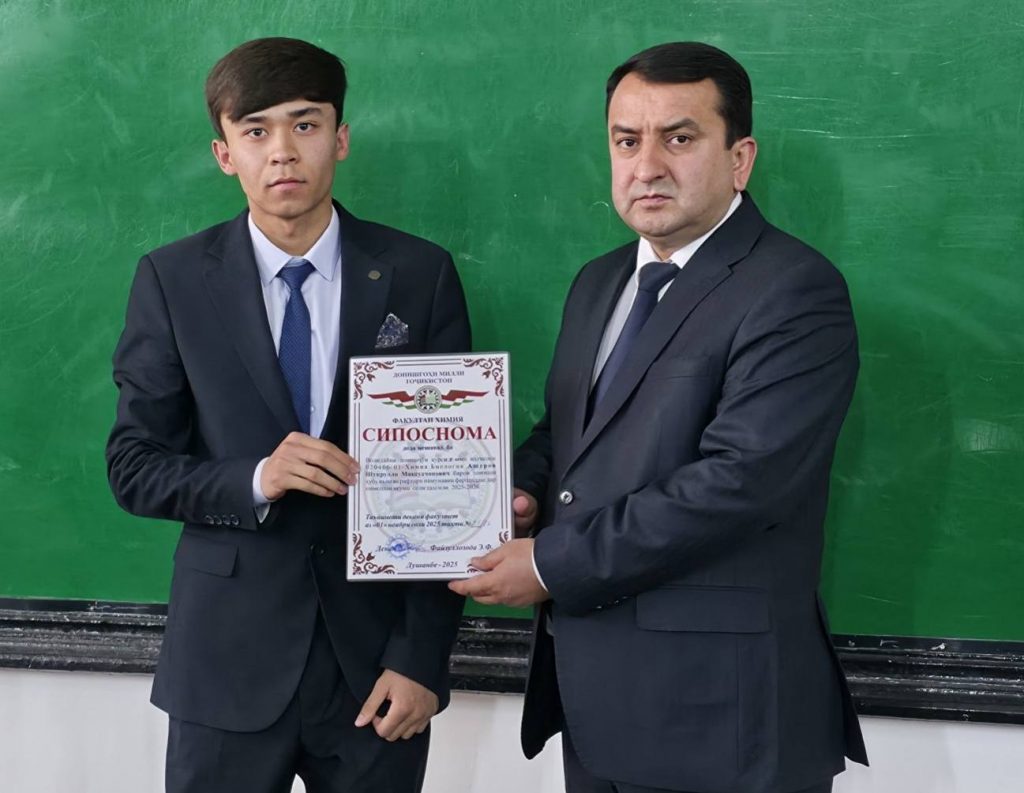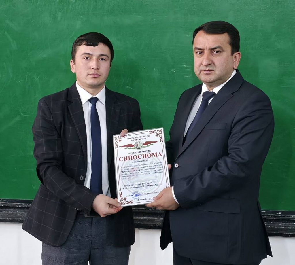 Имрӯз (01.11.2025) дар доираи ҷаласа бо волидайни донишҷӯёни курсҳои сеюм ва чоруми факултети химияи ДМТ ба як қатор волидайни донишҷӯён ва донишҷӯён барои дониши хубу аъло ва рафтори намунавӣ аз ҷониби Садорати факултети химия СИПОСНОМА дода шуд.