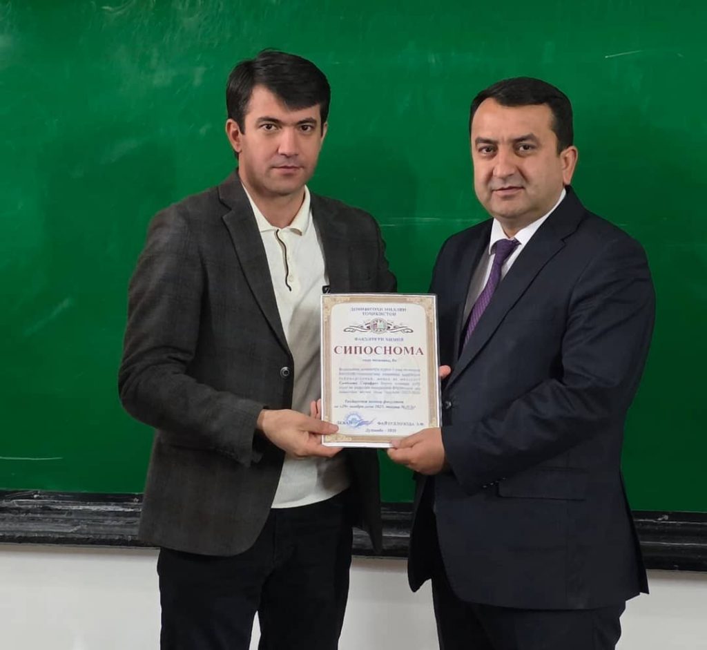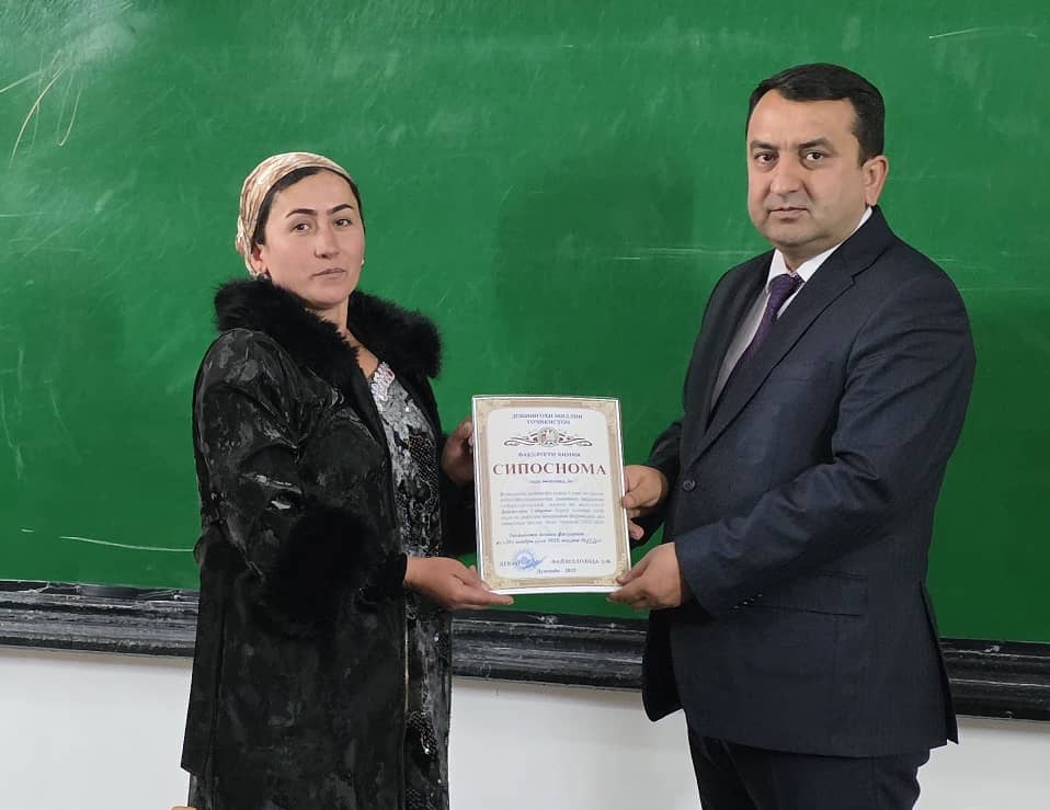 Дар охир ба он волидайне, ки фарзандонашон то ин давра, дар факултет рафтори намунавӣ ва хониши хубу аъло нишон додан бо Сипосномаи факултет қадрдонӣ шуданд.