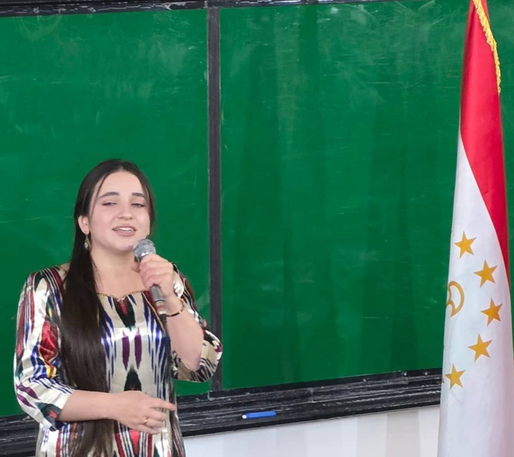 Дар охир донишҷӯён бо қироати шеъру суруд дар васфи Парчами давлатӣ таъби ҳозиринро болида намуданд.